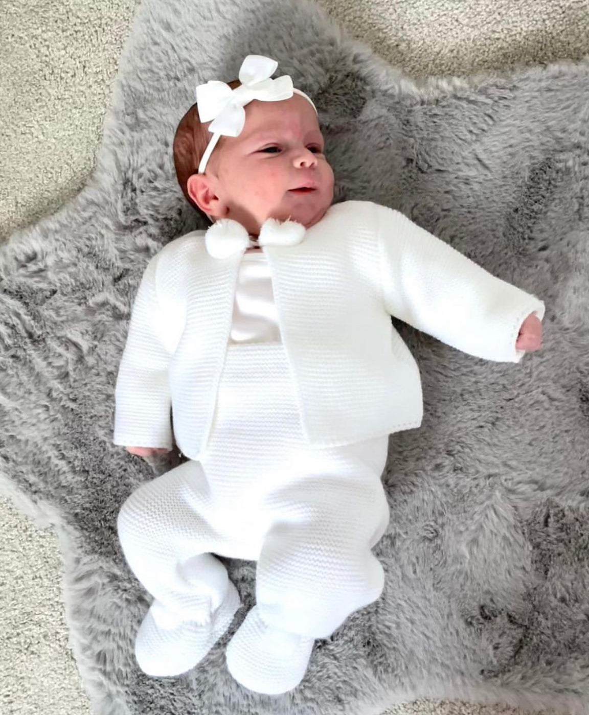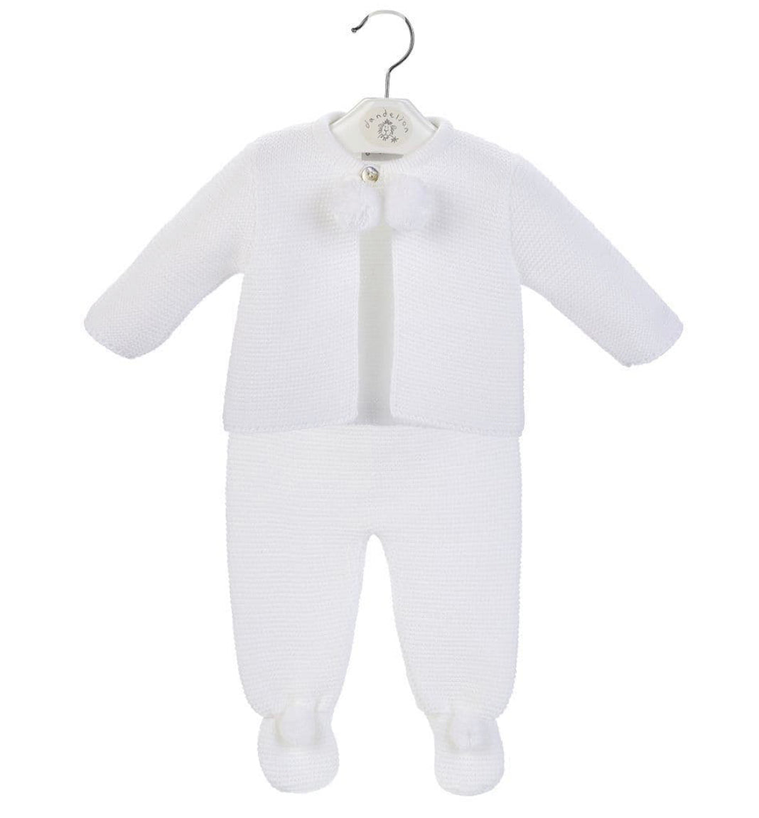 White Dandelion Knitted Pom Two Piece Set