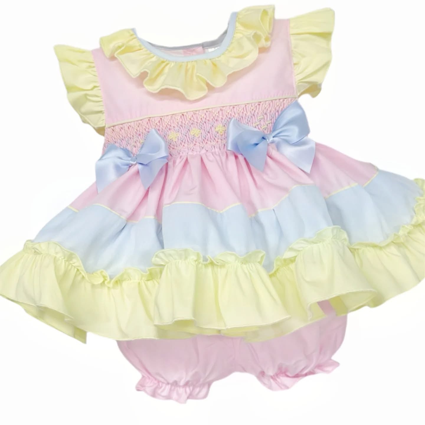 Baby GIrl Cotton Rainbow Smocked Dress with Bloomers