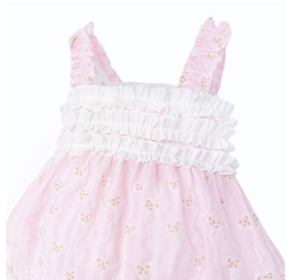 Baby Pink Cotton Puff Ball Summer Dress with Bloomers