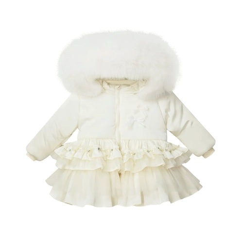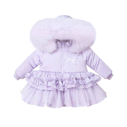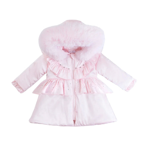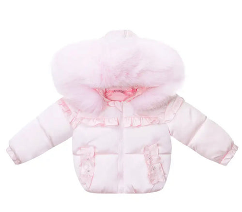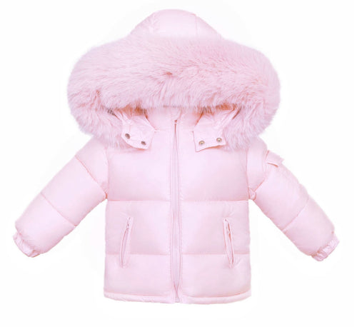 Baby Girl Pink Puffer Jacket with Faux Fur