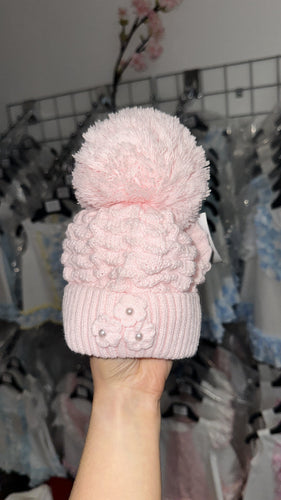 Pink Double Pom Floral Hat