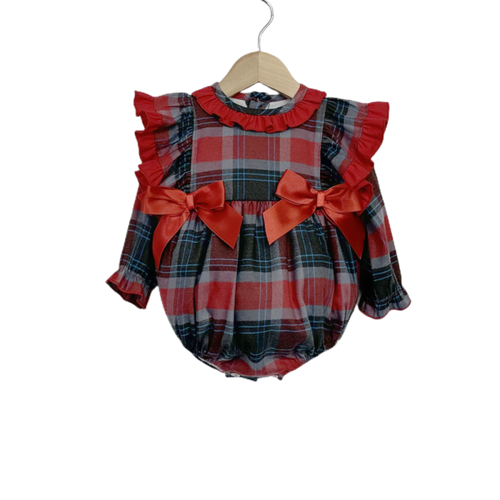 Baby Girl Tartan Cotton Frilly Shoulder Romper