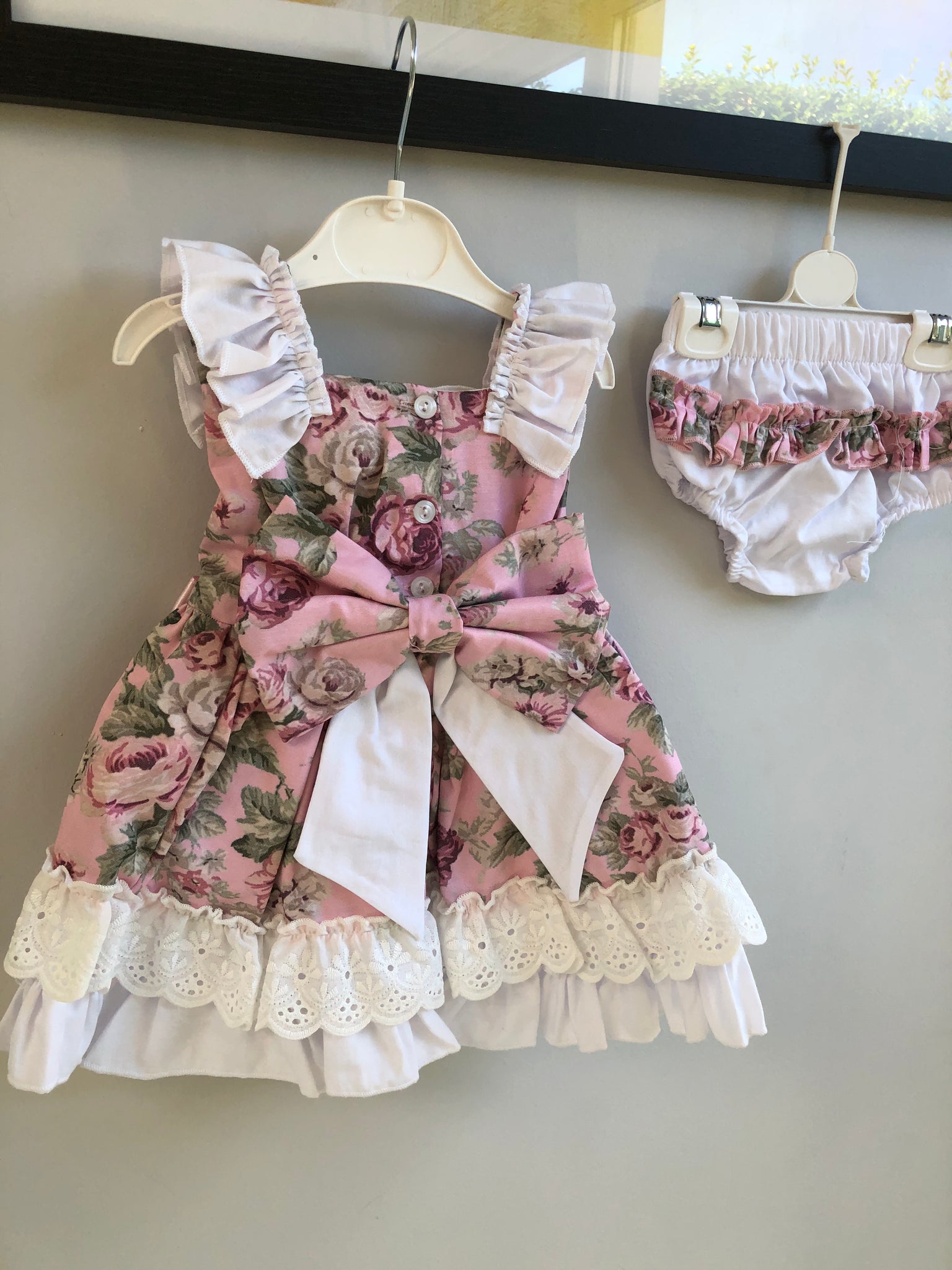 Pink Baby Girls Floral Spanish Lace Dress & Bloomers (6-24m)