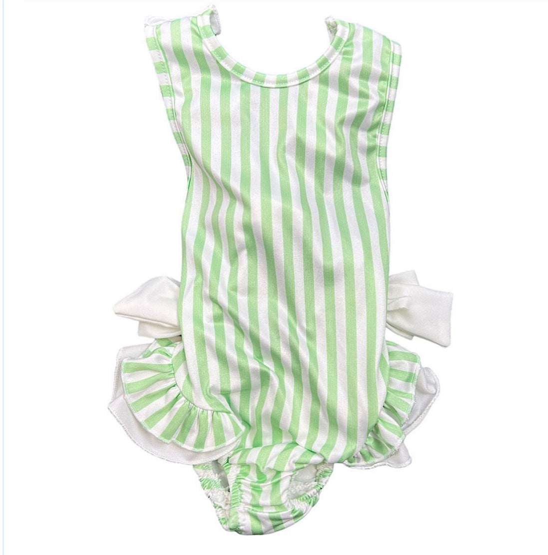 Mint Striped Ruffle Cross Back Swimsuit