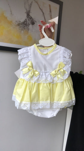 Exclusive to Bella Sorella Babywear Lace Yellow & White Dress with Bloomers