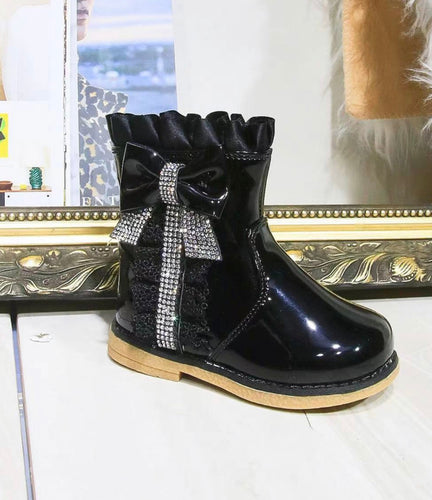 Girls Black Diamonte Boots (UK 3-7)