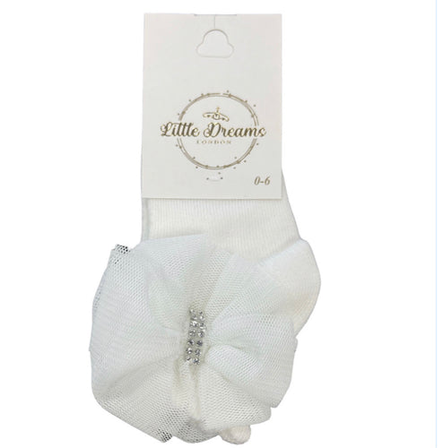 Ivory Bow Mesh Ankle Sock